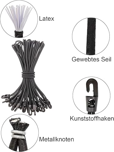WMZOBH 20 Stück Planenclips + 20 Stück Spanngummi mit Haken 25cm - Zeltplane Clips Planenbefestigung - Tarp Clips für Zelt Camping (Schwarz)