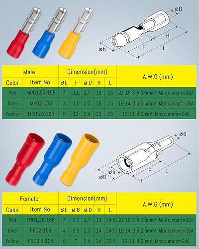 300 Stück 0.5-6.0mm² Kabelschuhe Set, Bolatus Kabelschuh Sortiment Flachstecker und Gabelkabelschuhe, Ringkabelschuhe, Stoßverbinder KFZ Quetschverbinder Set