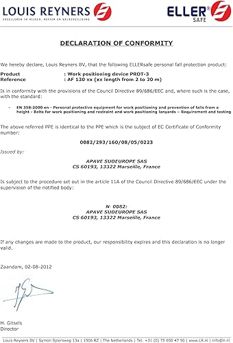 ELLERsafe Verstellbare Positionierungslinie für Fallschutz und Fallsicherung - PROT-3 - Kernmantelleine: 14mm - Die Verbindung zwischen Ihrem Gurtzeug und dem Ankerpunkt