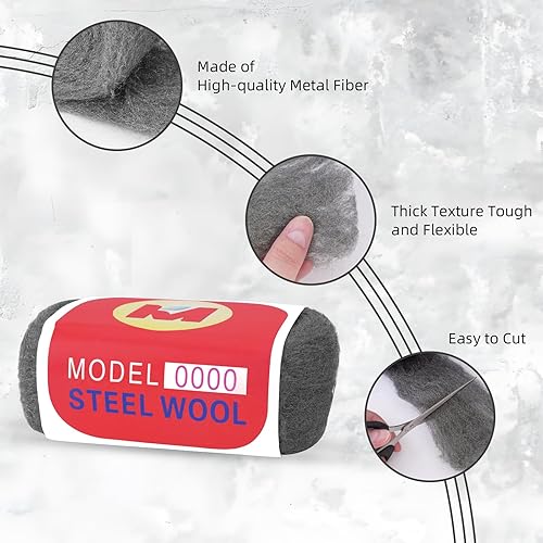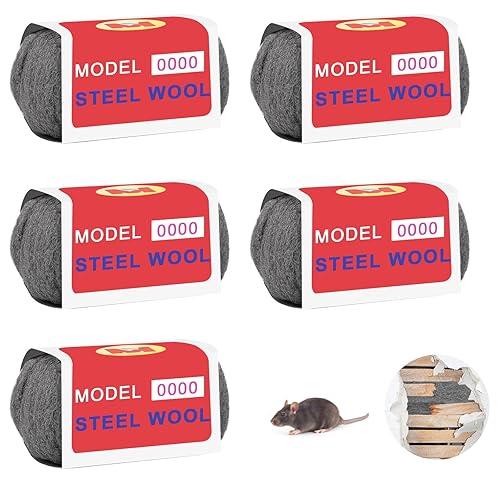 Stahlwolle 0000 - POFIBO Stahlwolle Gegen Mäuse, 5 Rollen 20m Stahlwolle Fein 0000 zum Polieren, Spezieller Bauschaum Gegen Mäuse, Schneidbar Mäuseabwehr Stahl Wolle für Haus, Garage und Garten