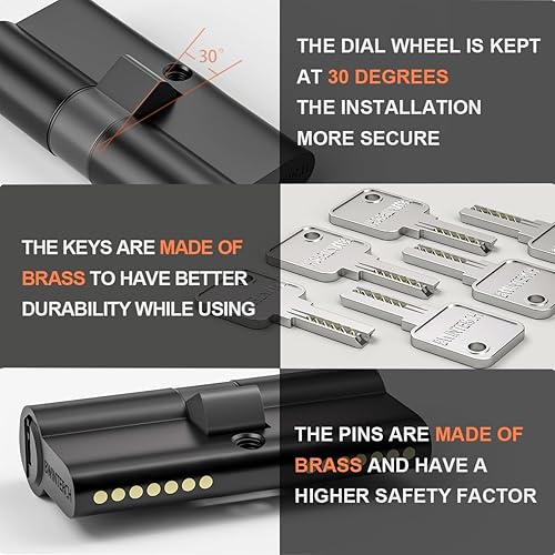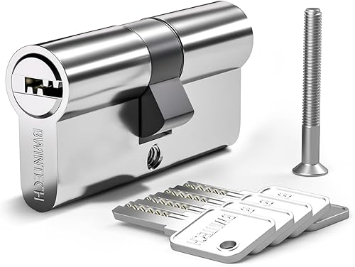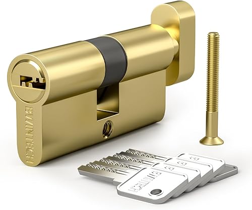 Bwintech 1 Stück 30/30mm Euro Messingzylinder, 60mm Schlüssel/Schlüsselzylinderschloss mit 5 horizontalen Messingschlüsseln,Anti Picking,Anti Bohr,Anti Snap,Anti Bumping, Satin Nickel Finish