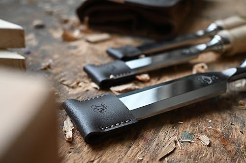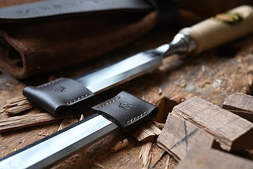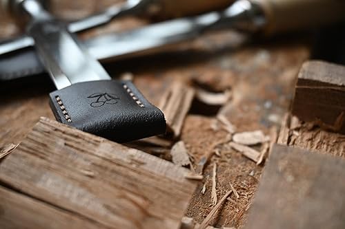 KIRSCHEN Schneidenschutz – Schutz für Stechbeitel mit 40 mm Klingenbreite und Zimmermannsbeitel NERO in 35 mm, Klingenschutz aus Leder, Messerschutz 8505040