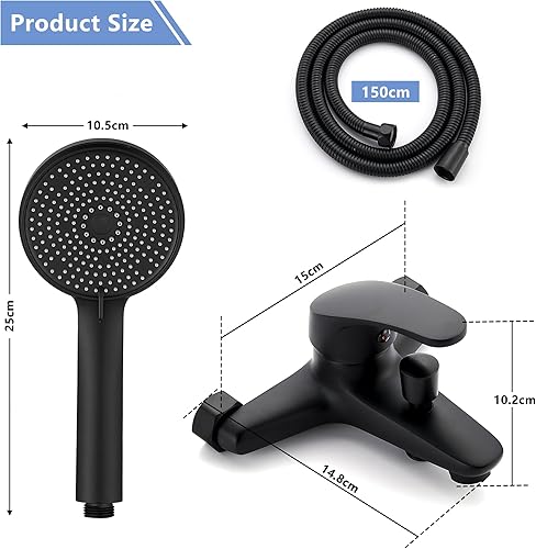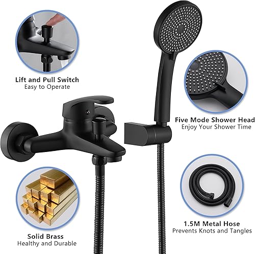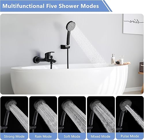 SWOYYU Badewannenarmatur mit Handbrause Duscharmatur Einhebel Wannenarmatur 5 Funktionen mit 150CM Schlauch Mischbatterie Dusche für Badewanne Bad Wandmontage Schwarz Matt