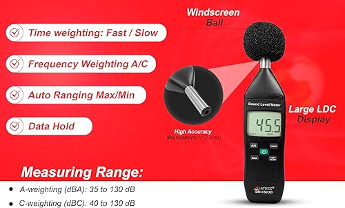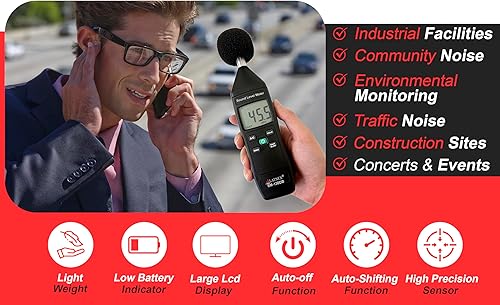 SM-130DB Digitales Dezibel-Messgerät und Schallpegelmesser Typ 2 mit Kalibrierzertifikat Messgerät für Umwelt- und mechanische Lärmmonitor - Fertigung, Büro, Klassenzimmer