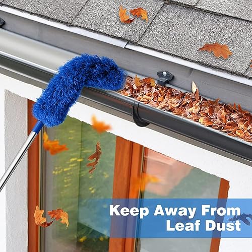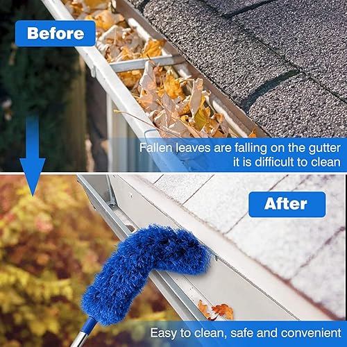 Barabesty Dachrinnen-Reinigungsbürste mit ausziehbarer Teleskopstange, 2,5 m, Reinigungswerkzeug, leicht zu entfernen, blau