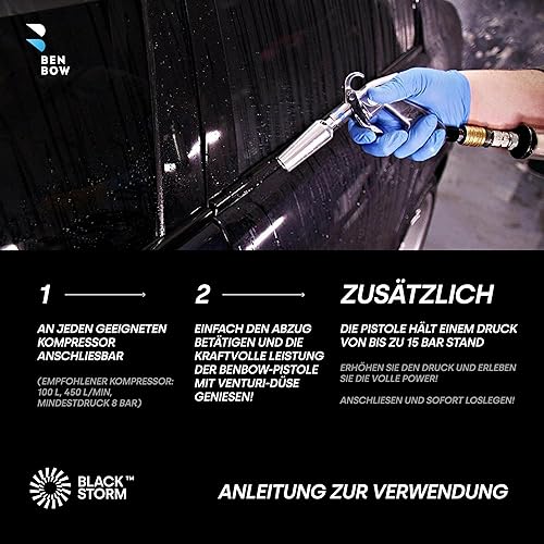 BenBow Trocken Ausblaspistole Classic Autopflege - Druckluft Zubehör zum Wegblasen von Feuchtigkeit, Schmutz und Dreck Blow Gun mit Wirbelwind-Effekt - ohne Behälter