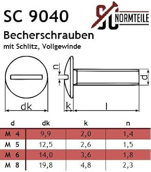 Flachrundschrauben mit Schlitz - M4x16 - (200 Stück) - Becherschrauben - Vollgewinde - Edelstahl A2 V2A - SC9040 | SC-Normteile®