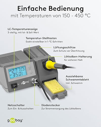 Fixpoint 51098 Digitale Lötstation EP5 / 48W Digitales Lötkolben Set / Einstellbare Temperatur 150 - 450 Grad / Feine Lötspitze / Soldering Station mit LCD Anzeige