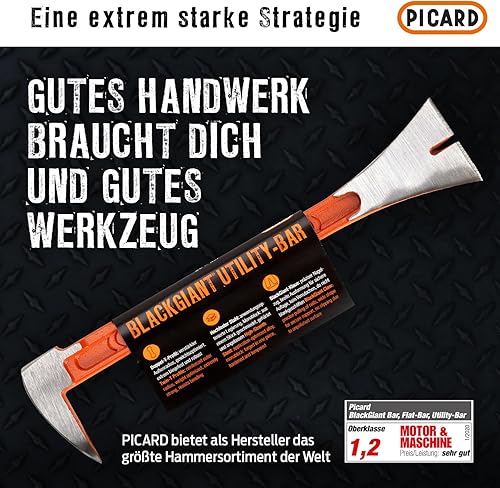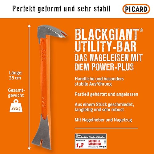 Picard Nageleisen BlackGiant® Utility-Bar Nr. 46Y - 250 mm, aus einem Stück geschmiedet, extrem Stabil, handlich, mit Nagelheber, Brecheisen 0004699-002