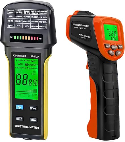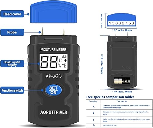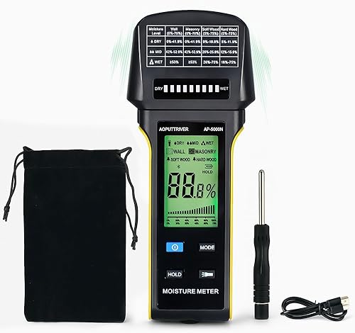 Digitaler Feuchtigkeitsmessgerät, Pin-Typ Vochtmeters Vochtindicator Feuchteindikator Holzfeuchtemessgerät Feuchtigkeits Detektor mit LCD-Rücklicht + Datenaufnahme für Holz Brennholz Wände Estrich uvm