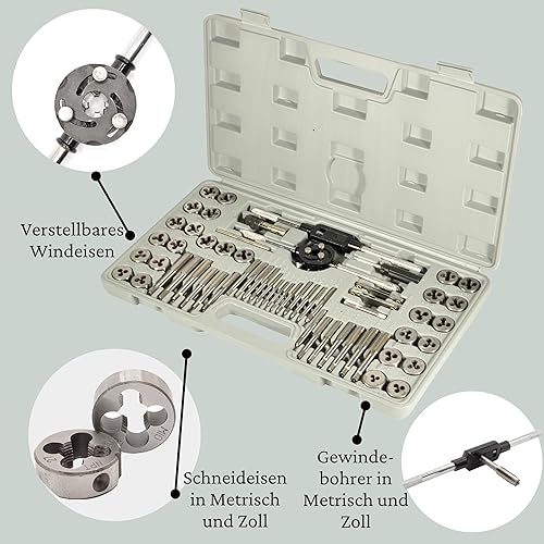 Gewindeschneider Set | 60 teilig | metrisch | Zoll | Komplettset | UNC-Grobgewinde | UNF-Feingewinde | Gewindeschneid-Satz 60tlg. | Gewindeschneid-Set | Gewindebohrer