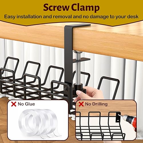 Kabelmanagement unter dem Schreibtisch Ohne Bohren Kit Kabelkanal Schreibtisch Klemmbar Kabel Organizer Tray Stabile Metall Tisch Kabelhalter Schreibtisch für Startseite Büro