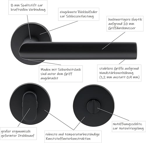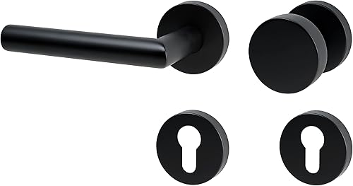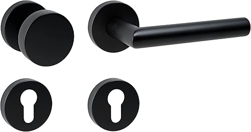 ck-türbeschläge Drückergarnitur New Orleans Schwarz matt für Zimmertüren DIN-Norm (BB (Buntbart))