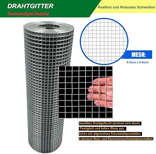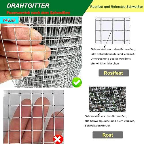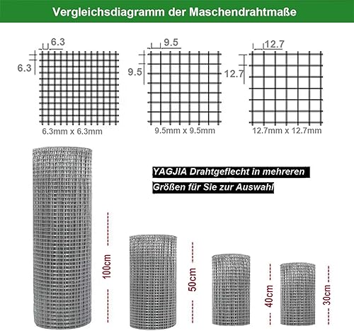 YAGJIA Wühlmausgitter 50cm x 10m, Volierendraht 6.3mm x 6.3mm, Maschendraht Drahtgitter Feinmaschig verzinkt, Metallgitter als Hasendraht Kaninchendraht Hühnerdraht, 0,6mm