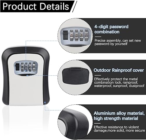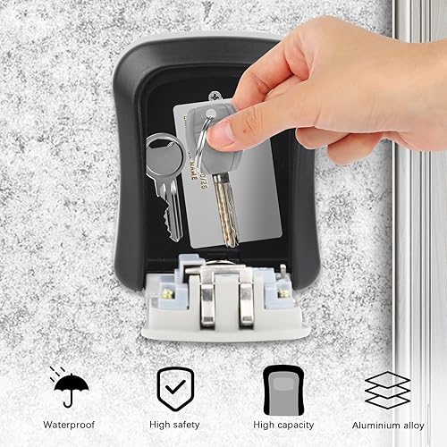 Schlüsseltresor Außen, Schlüsselbox mit Code, Schlüsseltresor Wandmontage, Schlüsselkasten mit Zahlencode, Schlüsselsafe Wetterfest, Zinklegierung, für Ersatz Hau Schlüssel, Garagen, Schule, Büro