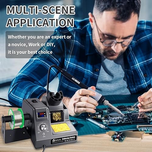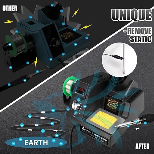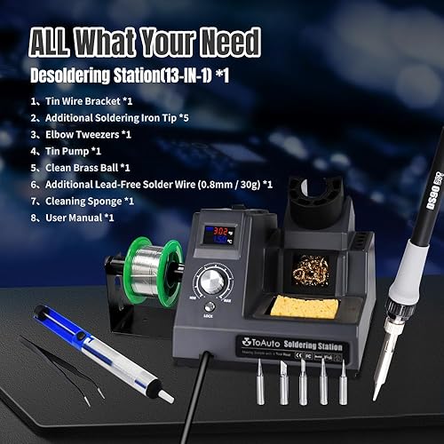 TOAUTO DS90 Lötstation-°F & °C Dual Digital Display Lötkolben Set,90W Lötkolben,302℉- 842℉ Temperatur, antistatisch und Erdungskabel, Standby-Modus Lötset,5 Lötspitzen, Entlötpumpe,50g bleifreies Lot