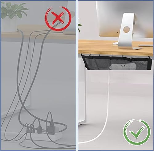UYUYong Kabelnetz Schreibtisch für Kabelmanagement, Tisch Netz Ohne Bohren mit 8 Haken Verstellbare kabelklettbänder Kabelhalter Kabelclips für PC-Kabel Schreibtischorganisation zum Kabel Verstecken