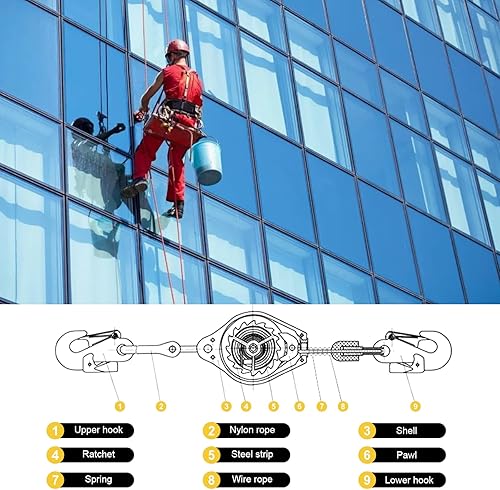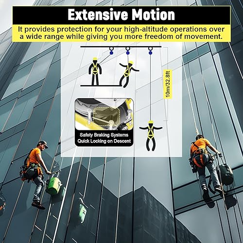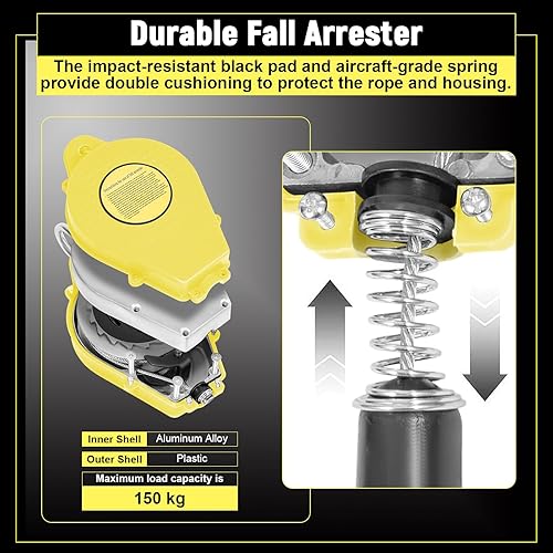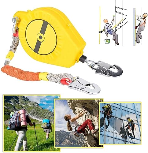LIROPAU Höhensicherungsgerät, 10M Absturzsicherung mit Automatischer Sperrfunktion, Tragbar Fallschutz, Klettern Sicherungsgerät Einziehbar Absturzsicherung Maximale Belastung 150kg