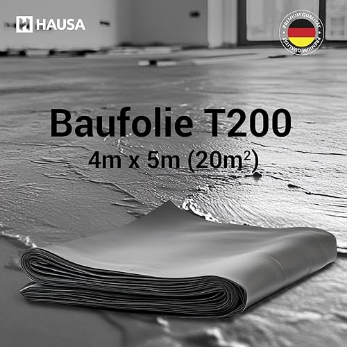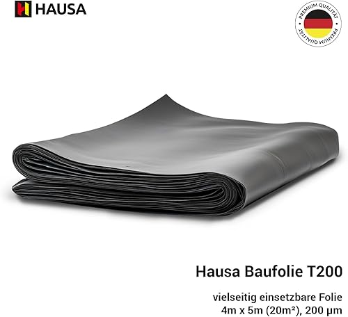 HAUSA Baufolie T200 4m x 25m (100m²) schwarz 200my extra starke Abdeckfolie/Abdeckplane wasserdichte Estrichfolie Rolle reißfeste Teichfolie Baufoil Typ 200 für Innen- & Außenbereich Schutzfolie