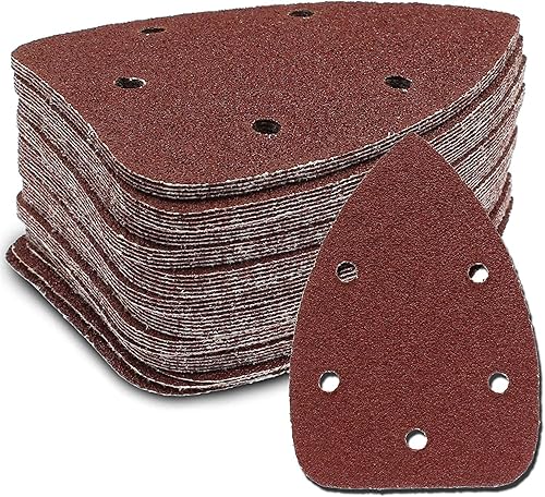 KOMUNJ 40 Stück Klett Schleifblätter für Delta-Schleifer, 140mm Körnung, 60/80/120/240 5 Löcher, für Detailschleifer, Dreieckschleifpapier, Schleifpapier, Schleifblätter
