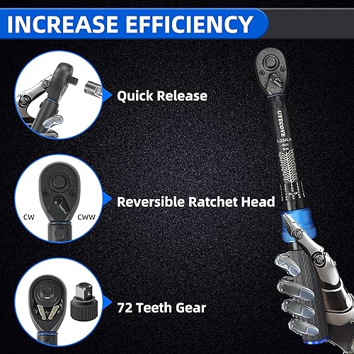 UYECOVE Drehmomentschlüssel 3/8 Zoll, 5-60Nm Drehmomentschlüssel, ±3% Fehlergenauigkeit, 72 Zähne Wende Ratschenkopf, für Fahrrad, Motorrad und Auto Zündkerzenwechsel