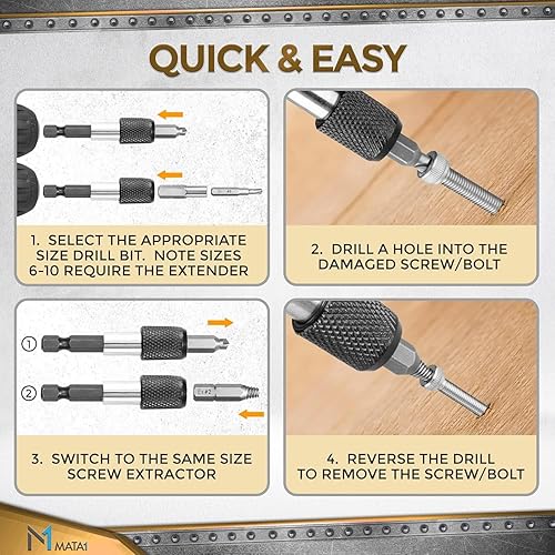 22-teiliges Schraubenausdreher-Set für abisolierte, gebrochene, beschädigte Schrauben – Entferner-Kit mit Bohrern, Ausziehern, Bit-Verlängerung und Steckschlüssel-Adapter von Mata1