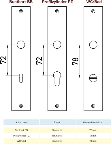 Beschläge Hamburg | Türgriff Türbeschlag | EMILY ART 70-09 MPC BB | Türklinke mit Buntbart Langschild 45 x 235 mm für Zimmertüren | Drückergarnitur/Türdrücker für Innentüren | in Chrom poliert
