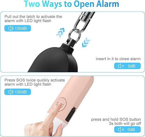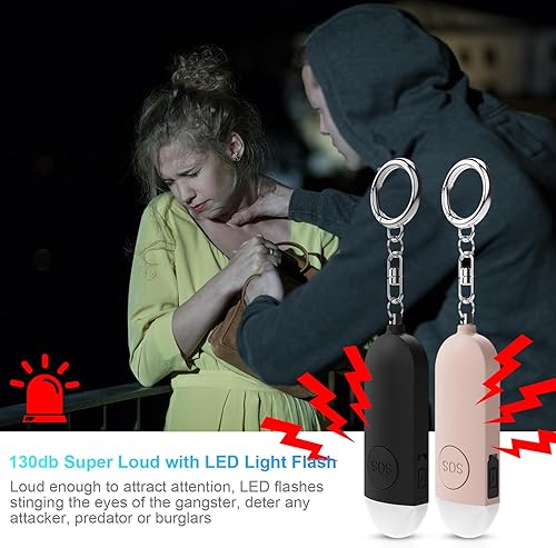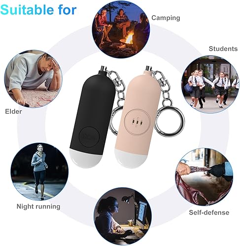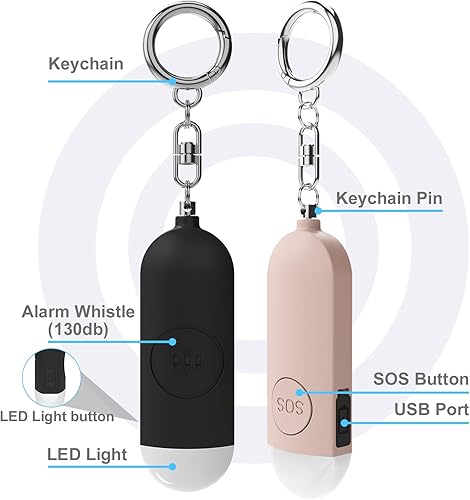 Qoosea 2 Taschenalarm mit 130 dB Persönlicher Alarm Safesound Persönlicher Sicherheitsalarm Wiederaufladbare Sirene Polizei genehmigte Panik Alarm mit LED-Licht, Schlüsselanhänger für Kinder Frauen