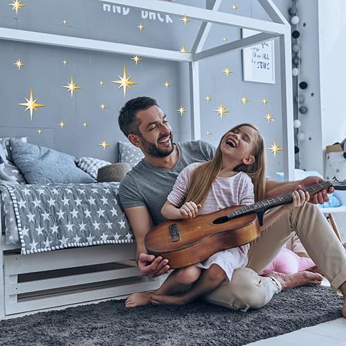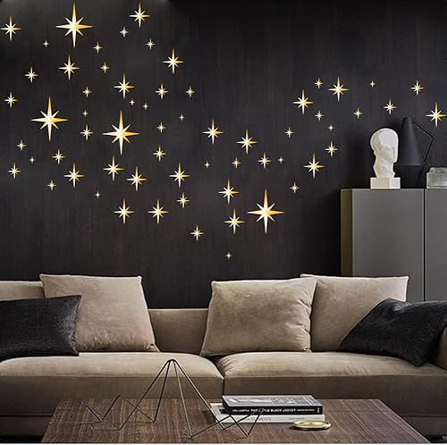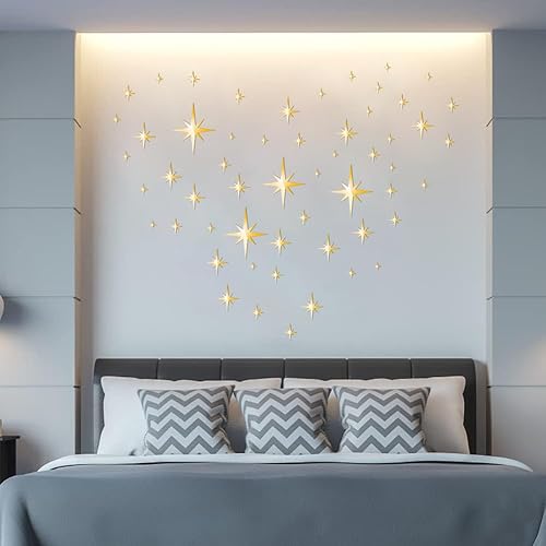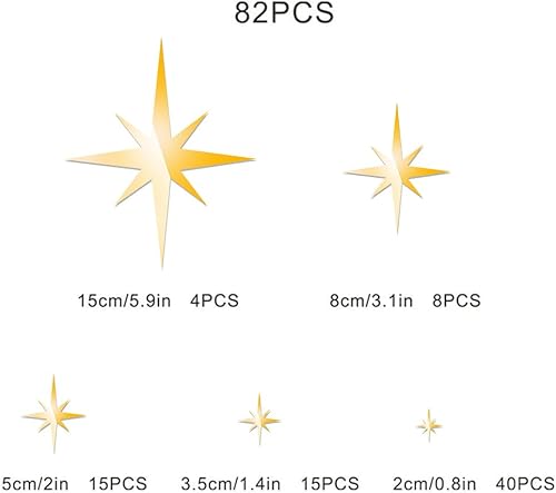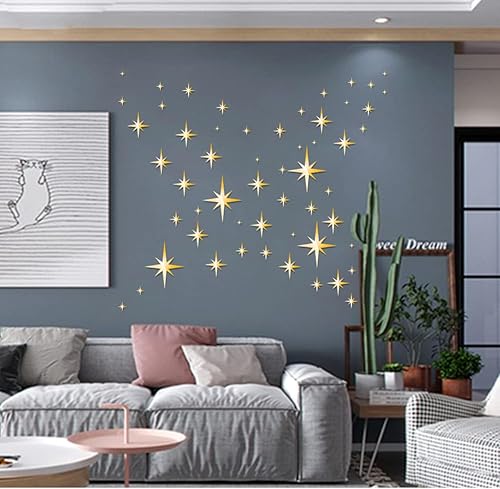 Spiegel Wandaufkleber Sterne, 82Pcs 3D Wandtattoo Spiegel Sterne Abnehmbare Spiegel Sticker Sterne Acryl Spiegel Sterne Selbstklebend für Home Wohnzimmer Schlafzimmer Dekor (Gold)