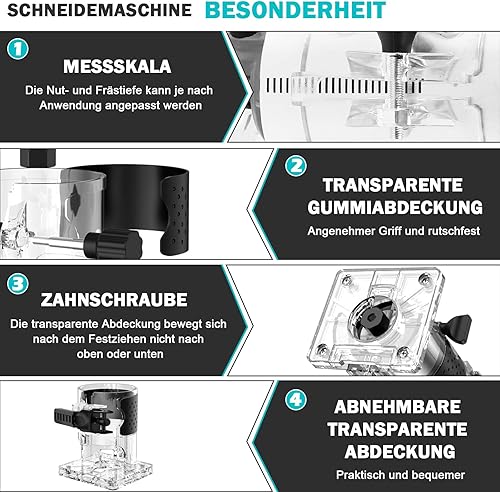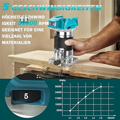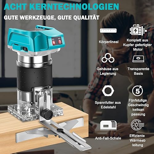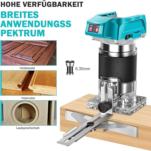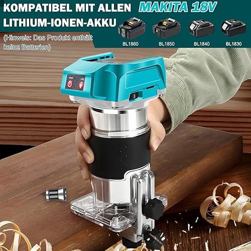 MaxAwe Akku Kantenfräse, Brushless Akku Oberfräse für Makita 18V, 600W Hartmetall Fräser mit Transparente Basis, Led Licht & Spannzangen(6,35mm) Einhand Oberfräsen für Holzbearbeitung ohne Akku