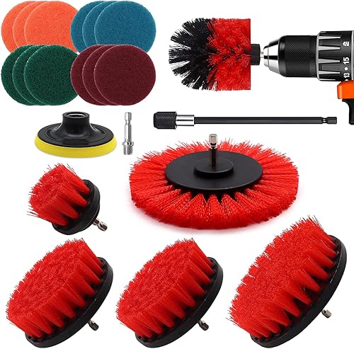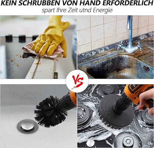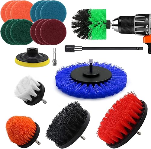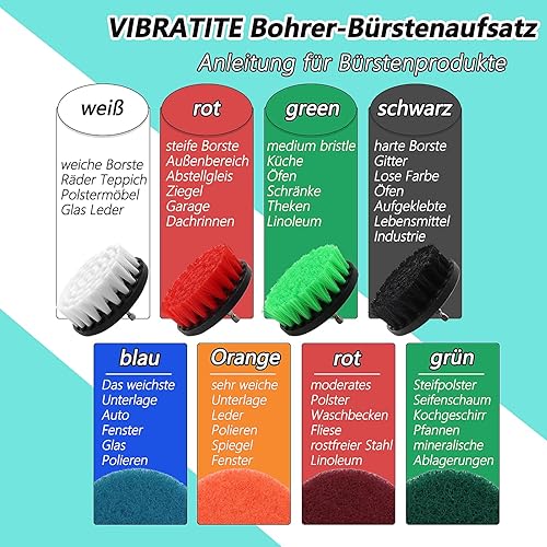 VIBRATITE Bürstenaufsatz Bohrmaschine Set, 20 Stück Bürstenaufsatz Akkuschrauber Bürste Reinigungsbürste Felgenbürste Scrubber Reinigung Kit, Power Scrubber für Bad, Felgen & Polster, Mehrfarbig