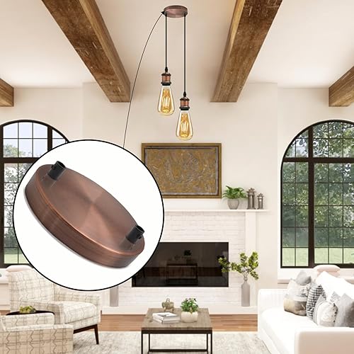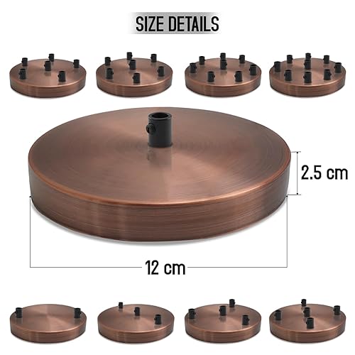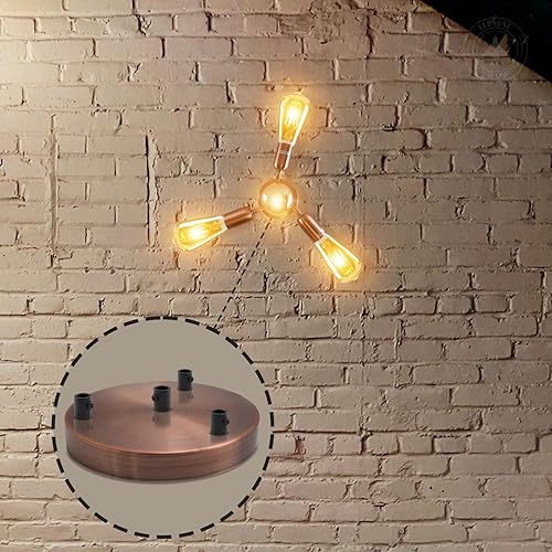 LEDSone 4 Steckdosen, kupferfarben, Deckenrosé, perfekt für Stoff-Flexkabel, 120 mm Metall-Deckenleuchte mit Zubehör für Decken- und Wandleuchte. (4 Ausgänge)