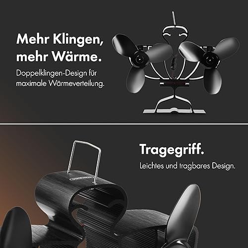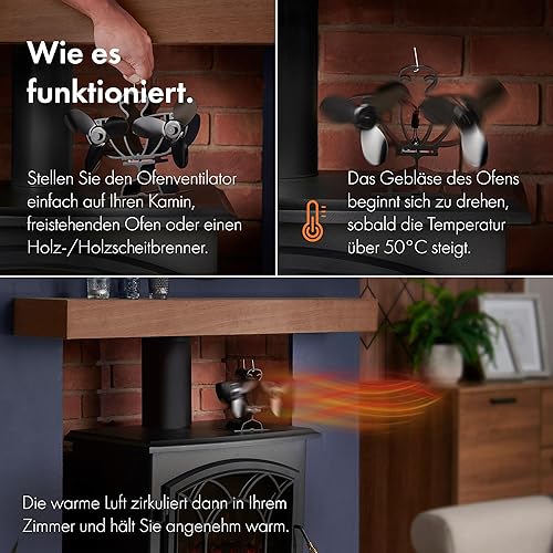VonHaus Ofenventilator – Wärmebetriebener Doppelter Kaminventilator für Holz-/ Scheitholzöfen, Kamine und Ofenheizungen – Leiser Betrieb, Umweltfreundlicher Ofenventilator Ohne Strom