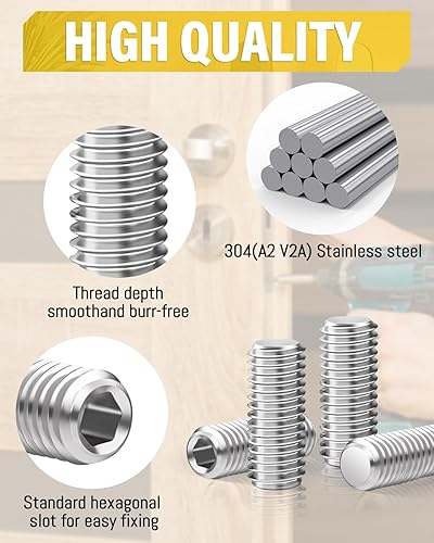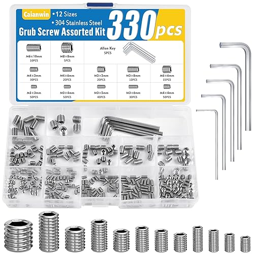 Caianwin 330 Stück Madenschrauben Set M3 M4 M5 M6 M8 Innensechskant Gewindestifte mit Schraubenschlüssel Edelstahl Sechskantkopf Schrauben für Türgriffe,Türklinke, Halterung