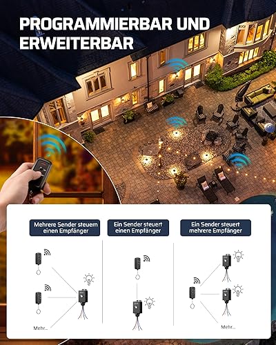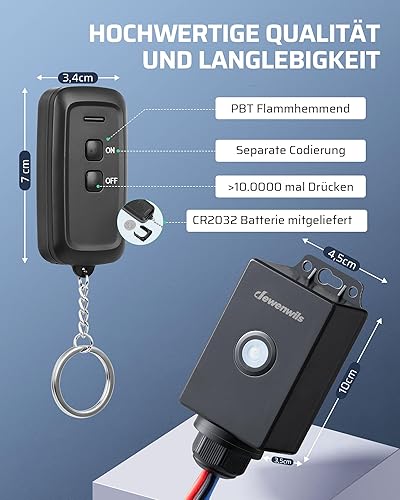 DEWENWILS Funkschalter Außen mit Fernbedienung, Funk Wandsender 230V IP65 Aussenbereich, Wandschalter mit Sender, Kabellos Lichtschalter Set, 3000W