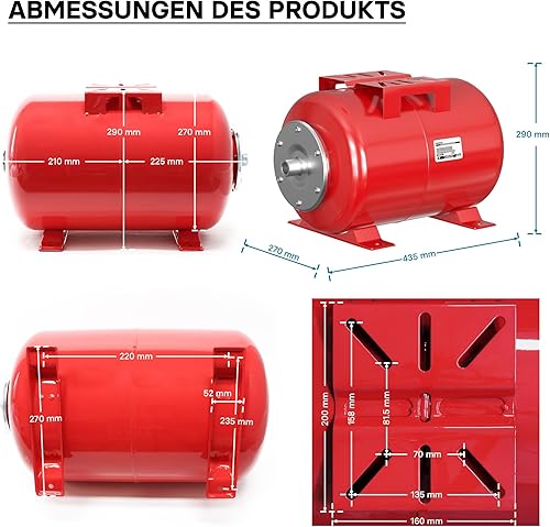 Wiltec Ausdehnungsgefäß 24 Liter, Membrankessel für Hauswasserwerke und Druckerhöhungsanlagen mit EPDM Membran