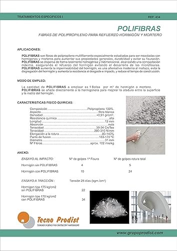 POLYFASERN von Tecno Prodist, Fasern 12 mm für Beton, Mörtel oder Gips - Polypropylen (Pp) - Verstärkung und Widerstand, verhindert Rissbildung - Homogene Verteilung der Mischung (2 Beutel 500 gr)