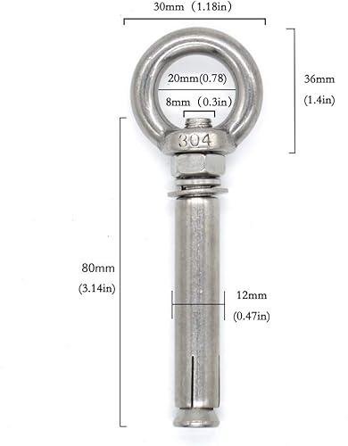 newlng M8 x80mm Ankerbolzen 304 Edelstahl Dehnschraube Bolzenanker Erweiterung Anker Erweiterung Bolzen Augenschraube 5 STÜCKE