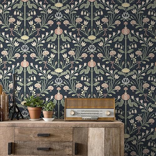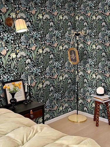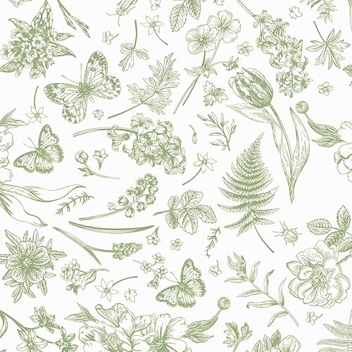 LiKiLiKi Selbstklebende Tapete Grün Moderne Blumetapete Wanddeko Design Klebetapete 44 x 300 cm Wasserdicht Dekorfolie Klebefolie Möbel Deko Schränke Wohnzimmer Schlafzimmer