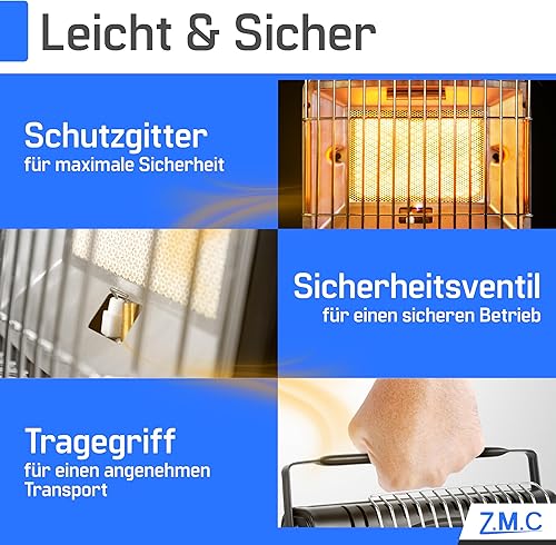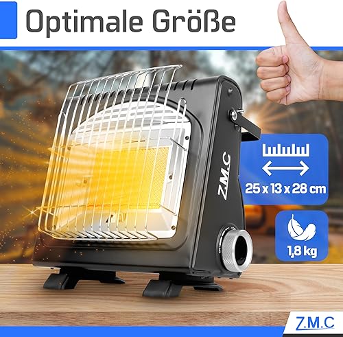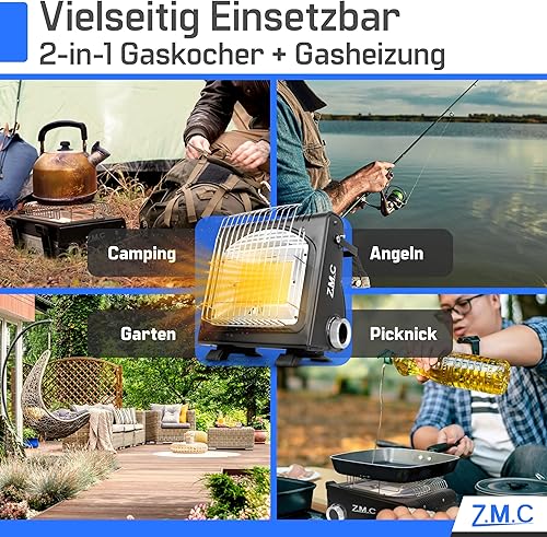 Z.M.C 2-in-1 Tragbare Gasheizung und Gaskocher, Camping Heizung multifunktionale Keramikheizung 1,7 kW, Gasheizer für Outdoor und Innenräume, mobile Heizstrahler mit Piezozündung