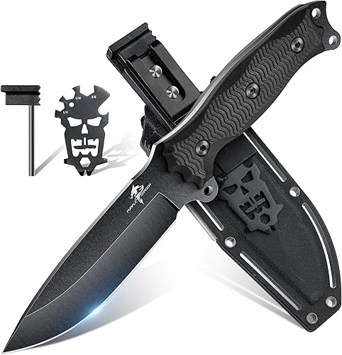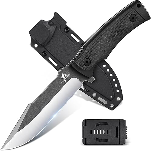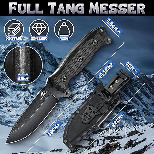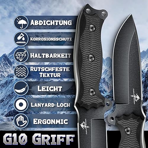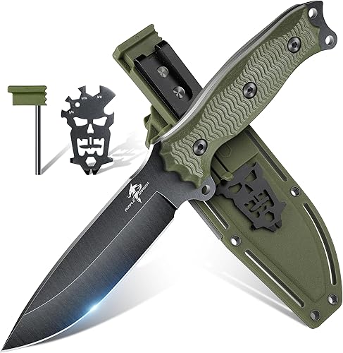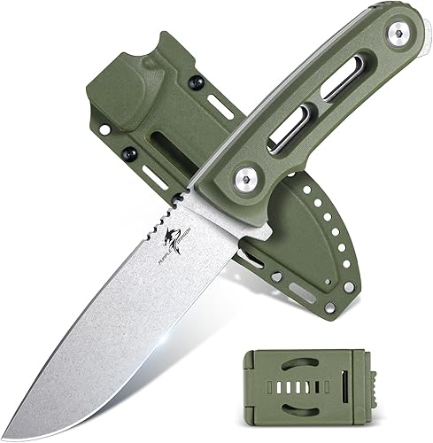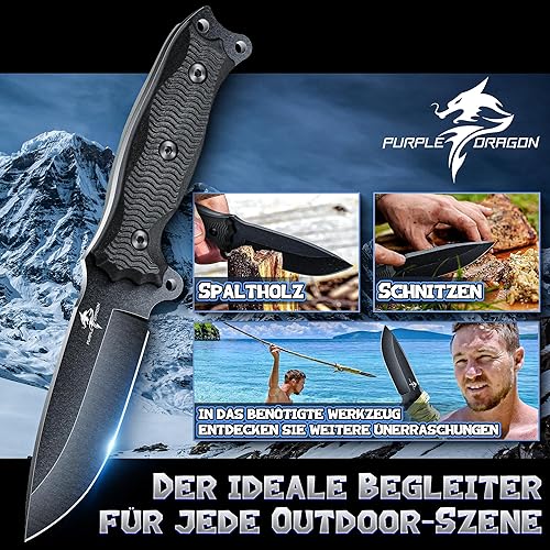 Purple Dragon Outdoor Messer Survival,Feststehendes Jagdmesser mit D2 Stahl Klinge,Scharf Fung Tang Messer mit 13CM G10 Griff,Kydex Scheide(Grün)