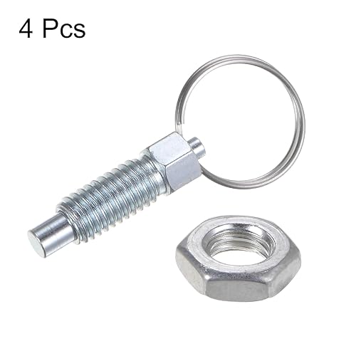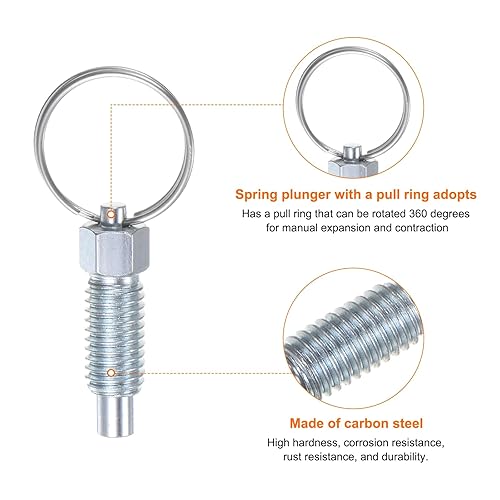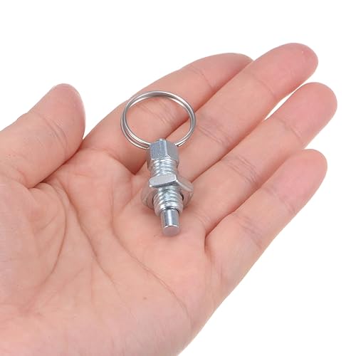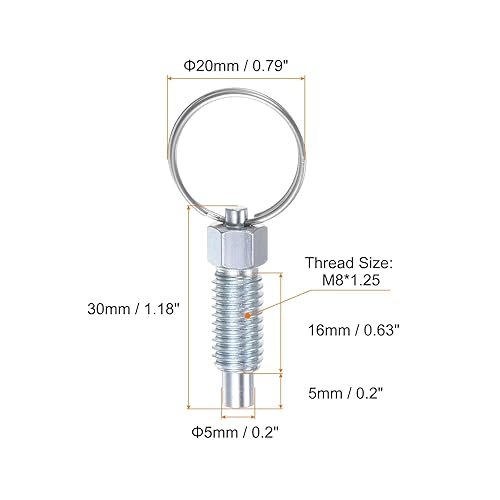 QUARKZMAN 4 Stück Federdruckstift mit Zugring M8*1.25 Gewindegröße 0,63' Gewindelänge Stift-Durchmesser 5mm Flachkopf Kohlenstoffstahl Nicht verriegelnder für industrielle Ausrüstung