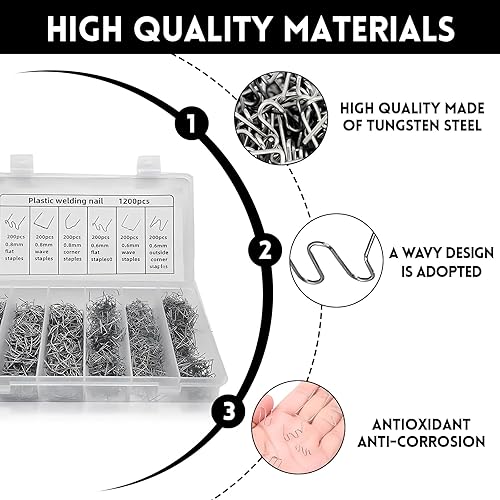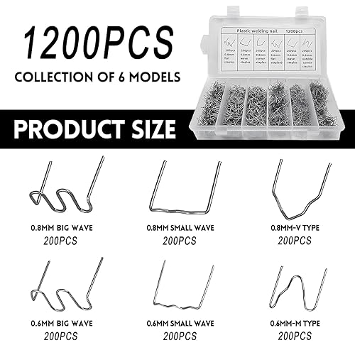 Kunststoff Schweißgerät,HPiano 1200 Stück Edelstahl Hot Staples,Hot Staples Welder Staple 0,8mm / 0,6mm Schweiß-Zubehör,Stoßstangen-Reparatur set,für Autostoßstange Rissreparatur Heißklammern