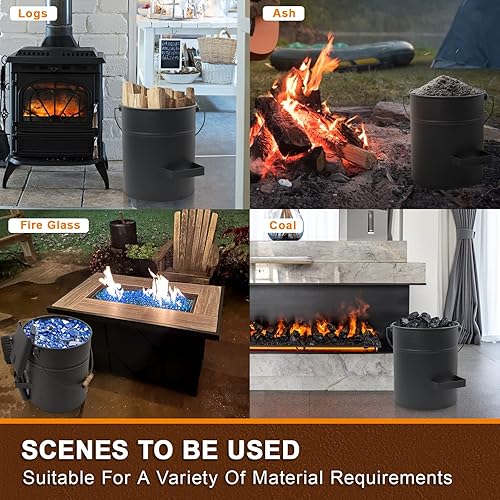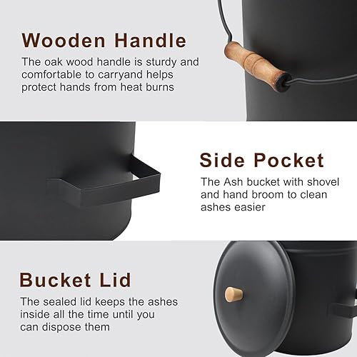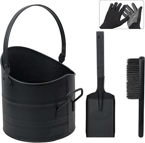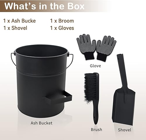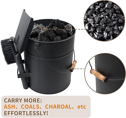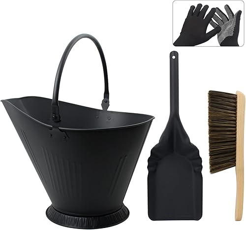 BRIAN & DANY Ascheeimer, Halbkreisförmiger Kohleeimer für Kamine, 10L Eimer mit Schaufel und Handbesen, Werkzeugset Zubehör für Kamin, Feuerstelle, Holzofen