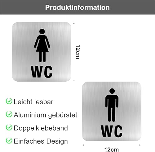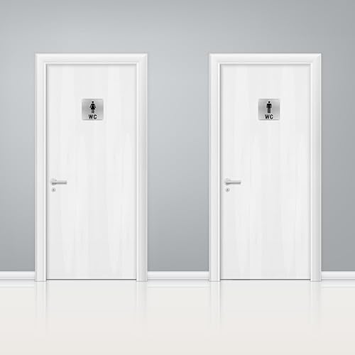 WC Schild Selbstklebend, 2 Stück Toilettenschilder Damen Herren, Edelstahl Toilettenschild Selbstklebend, Ideales Gäste WC Schild, WC Aufkleber, Türschild WC, Schild WC, Schild Toilette