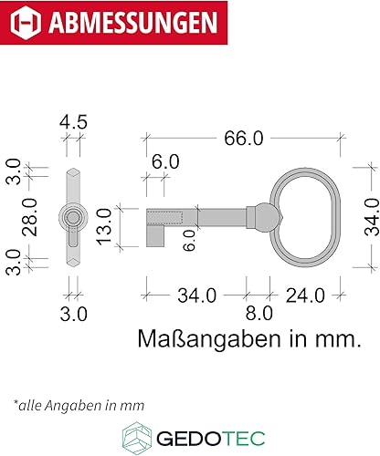 Gedotec Buntbartschlüssel für Möbel-Schloss Ersatz-Schlüssel Deko Schrank - H2134 | BEETHOVEN | 38 mm | Messing braun brüniert durchgerieben | 1 Stück - Möbelschlüssel Antik Vintage Rohling