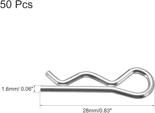 sourcing map 50 Stück Clip Stecknadeln R Förmiger Federstecker 1.6mm Draht Kohlenstoffstahl 28mm Länge Anhänger Traktor Mäher Verschluss Hardware Silber Ton