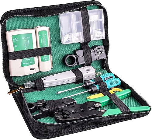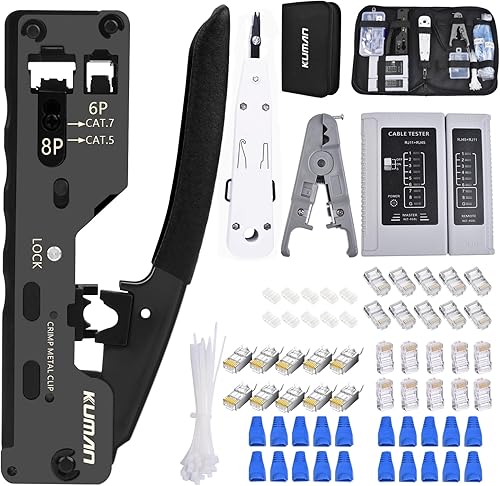 kuman Netzwerk Werkzeug Set, Crimpzange RJ45 Stecker Werkzeug für RJ45 Stecker Professional Netzwerk Kabeltester Kit Cat 7 Cat 6Ae P9300