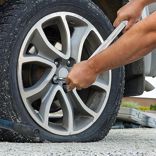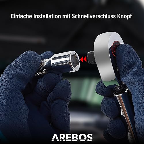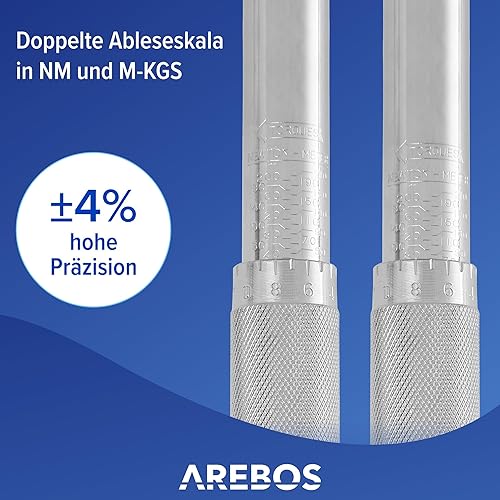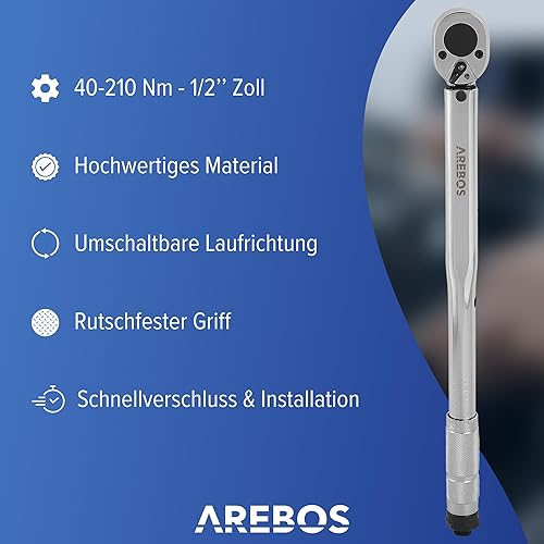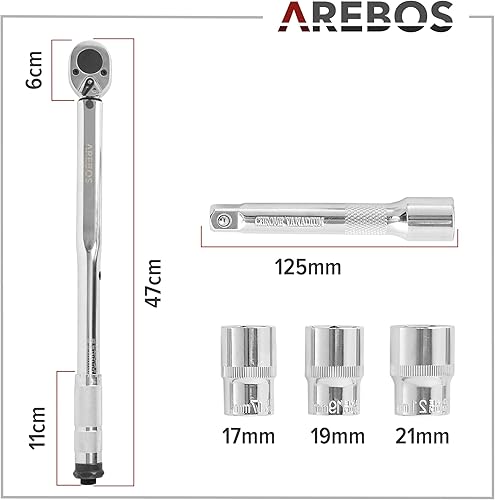 Arebos Drehmomentschlüssel 6 tlg. Set | 40-210Nm, 1/2'' Zoll | inkl. Stecknüsse 17, 19 und 21 mm, Verlängerung, Montagehandschuhe & Koffer | Toleranz +/- 4% | Reifenschlüssel Auto