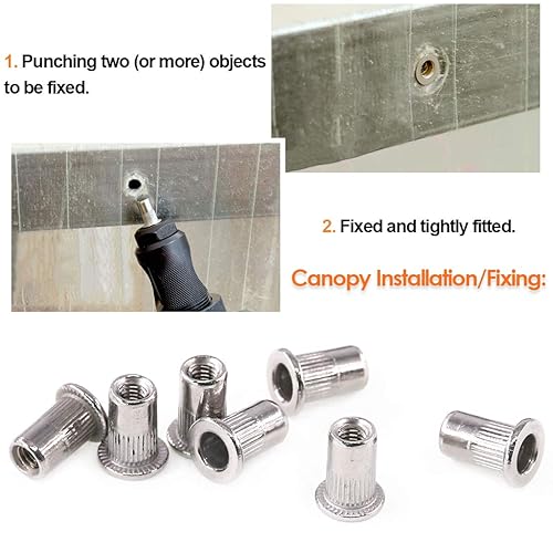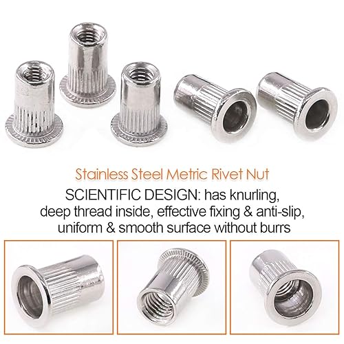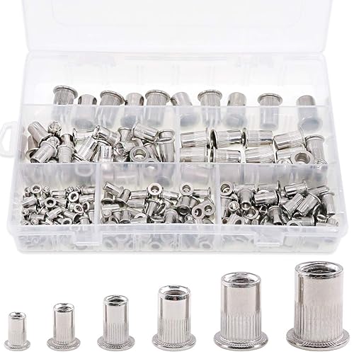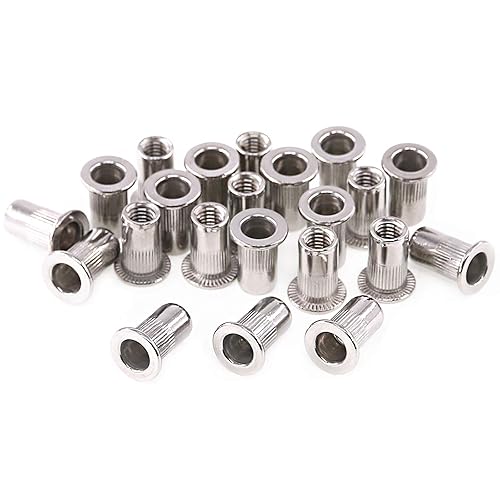 Keadic Nietmuttern-Sortiment-Set aus 304 Edelstahl, Flachkopf, Nietmuttern-Einsatz, Muttern, Sortiment für M3, M4, M5, M6, M8, M10, 205 Stück